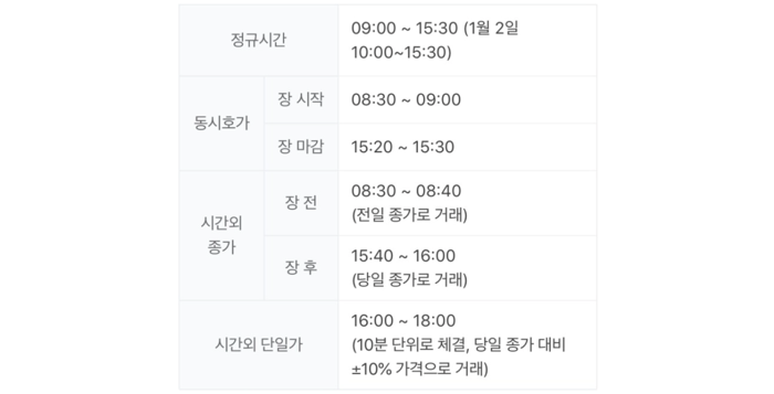 그러나 장 마감 동시호가가 체결이 안 되었다면 매매 주문은 자동 취소가 되기 때문에 장후 시간 외 종가 거래나 시간 외 단일가 거래를 통해서 체결 안 된 주문을 다시 넣어야 합니다.