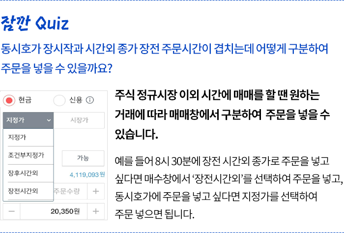 주식 시장이 시작되기 전이나 마감 후 급하게 팔아야 할 종목이 있다거나, 살 종목이 있었는데 놓쳐서 아쉬웠던 경험, 모두 한 번씩 있을 겁니다.