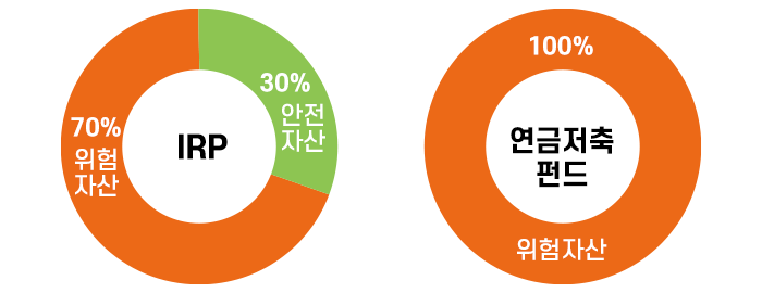 하지만 IRP에서는 주식형 펀드와 같은 위험자산에 70% 이상 투자할 수 없도록 제한하고 있습니다.
