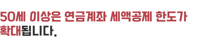 2020년부터 2022년까지 3년 동안 50세 이상은 연금계좌 세액공제 한도가 200만 원 늘어납니다.