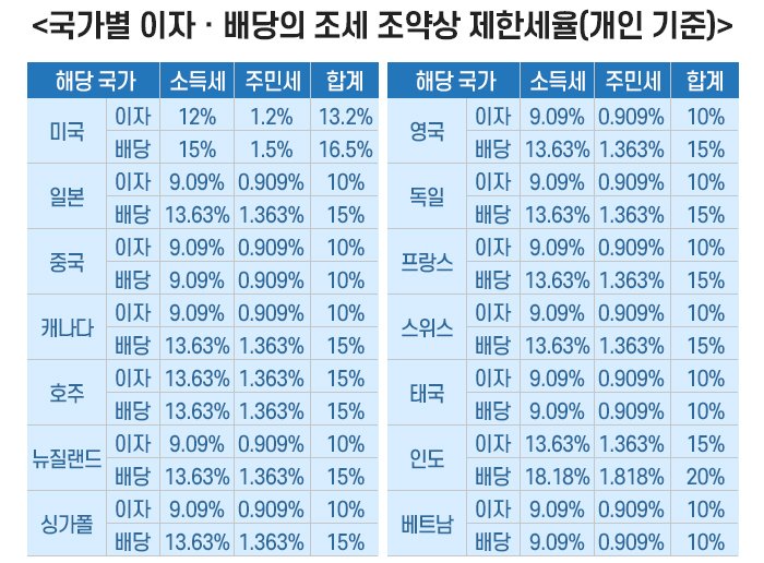 다만 비거주자의 거주지국과 우리나라 사이에 조세조약이 체결되어 있고, 여기서 정해 놓은 제한세율이 있다면 22%와 제한세율 중 낮은 세율이 적용됩니다.