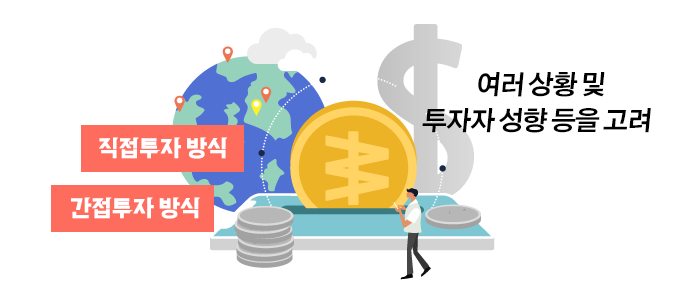 글로벌 투자로 투자의 영역을 넓히고 싶을 때, 직접투자하는 걸 선택할지 아니면 간접투자로 할지는 여러 상황 및 투자자의 성향 등을 고려해 선택할 필요가 있습니다.