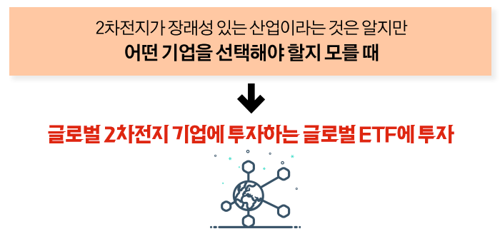 이런 상황이라면 글로벌 시장에서 어떤 기업이 선두를 차지하고 이끌어가는 것과는 상관없이 글로벌 2차전지 기업에 투자하는 테마형 글로벌ETF에 투자하는 것입니다.