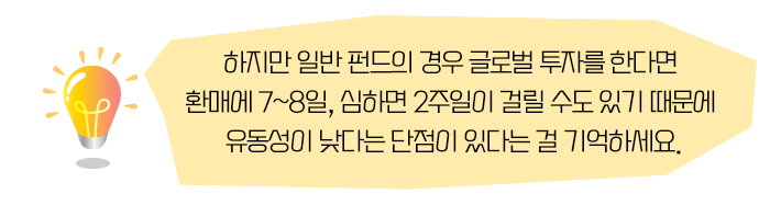 물론 ETF와 비슷하게 분산투자가 가능한 펀드를 통해 글로벌 투자를 하는 방법도 있습니다.