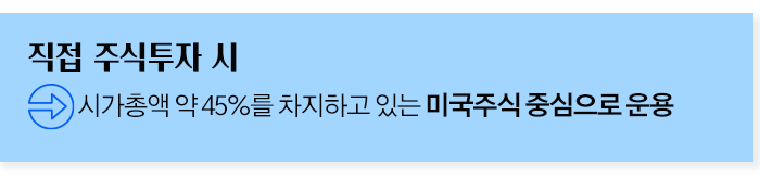 다만 이 경우에는 어느 정도 예측이 가능하고 자료도 많이 공개되어 있으며, 많은 전문가의 의견이나 정보가 오가는 G2국가이자 전 세계 주식시장 시가총액 45%로 압도적인 시장규모를 자랑하는 미국주식 중심으로 운용하는 것이 적합할 수 있습니다.