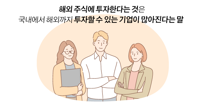 투자의 범위를 국내에서 해외까지 확대해서 바라보면 우리가 투자할 수 있는 기업의 주식이 훨씬 많아질 수 있다는 관점으로 접근해야 할 필요가 있습니다.