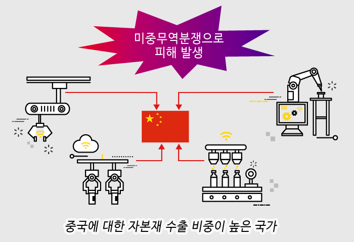 그중에서도 중국에 대한 자본재1) 수출 비중이 높은 국가들이 무역 분쟁으로 인한 피해가 큰 것으로 나타났다.