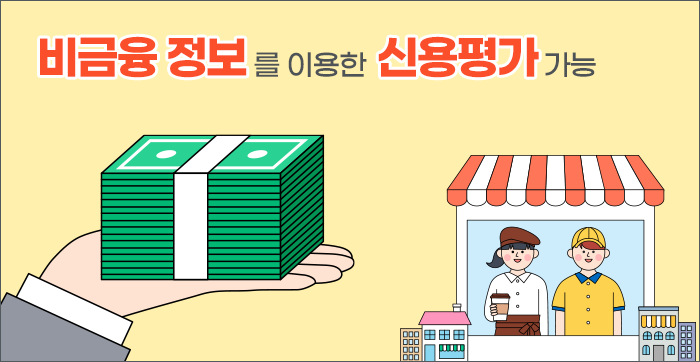 비금융 정보는 통신료·전기·가스·수도 요금 등을 말하는데, 이를 이용하면 대출·카드 사용 내역 등 금융거래 이력이 없어 신용평가가 불가능했던 사회 초년생이나 주부들도 통신·가스 요금 납부 등을 통해 신용점수를 쌓을 수 있습니다.