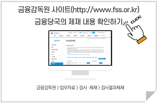 금융당국의 제재 내용은 금융감독원 사이트와 해당 금융회사 사이트를 통해서 중복 확인이 가능합니다.