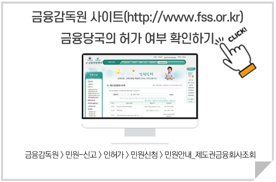 금융당국의 인허가 여부는 금융감독원 사이트를 통해 확인이 가능합니다.