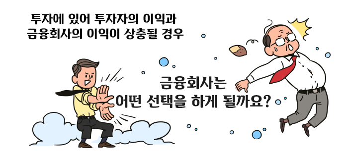 대부분의 금융회사는 투자자 이익에 우선하겠지만, 일부 금융회사의 경우 회사의 이익에 더 치중을 하는 경우가 간혹 발생합니다.