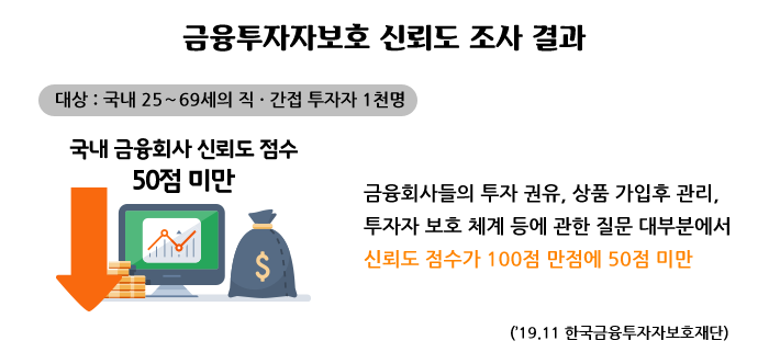 금융회사는 투자자의 신뢰를 바탕으로 하고 있습니다. 하지만 안타깝게도 국내 금융회사에 대한 일반 투자자들의 신뢰도 평가가 낙제점 수준이라는 조사 결과가 나왔습니다.
