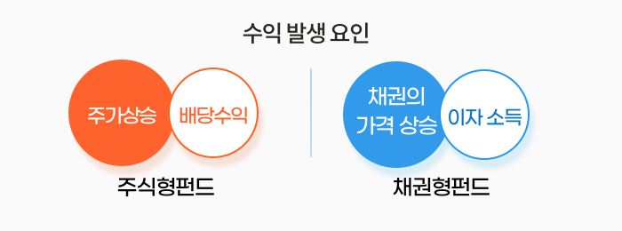 또한 주식형펀드는 주가상승 외에 배당으로 수익이 발생하는 것처럼, 채권형펀드는 채권가격변동 외에 이자소득에 의한 수익이 발생합니다.