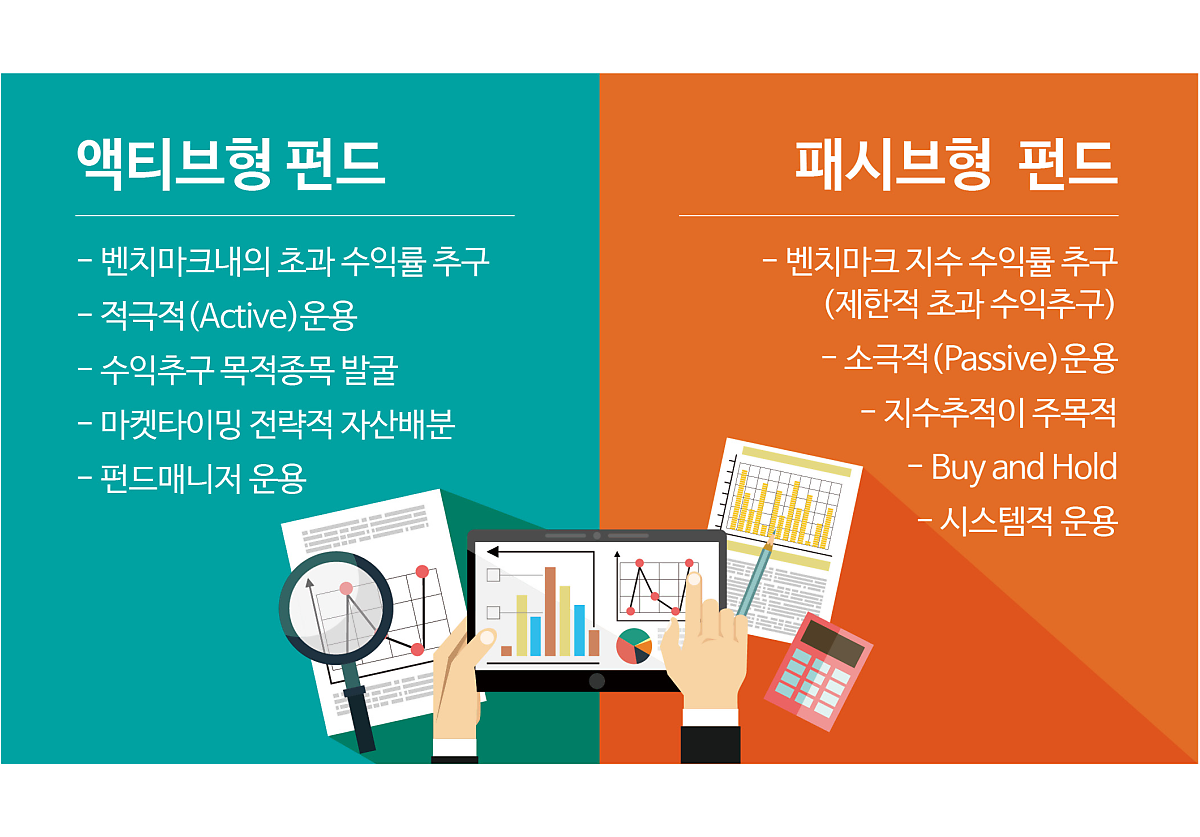 인덱스펀드를 보다 잘 이해하기 위해 펀드 운용철학인 액티브와 패시브 전략을 먼저 알아 둘 필요가 있다. 액티브 전략은 말 그대로 매니저가 시장 흐름과 주식 종목 가격의 변화를 잘 예측하고 이에 대응해서 주식시장보다 훨씬 높은 수익을 내고자 하는 운용방식이다. 현재 우리가 금융기관에서 접하는 펀드들의 2/3은 이런 액티브 운용 전략을 구사하는 펀드들이다.