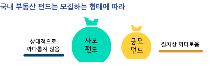 부동산 펀드는 모집하는 형태에 따라 사모펀드와 공모펀드로 나뉩니다.