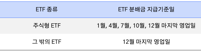 12월 결산법인이 압도적으로 많기 때문에 12월 마지막 영업일을 기준으로 지급하는 분배금이 대부분이라고 봐도 과언이 아닙니다.