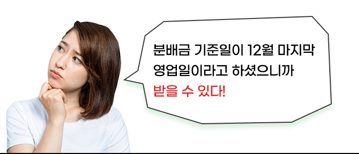 2020년 12월 30일(수)의 주주명부에 기재된 사람에게 분배금을 주는 것이기 때문에