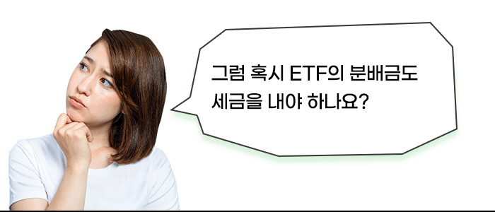 먼저 세금을 떼어 가기 때문에 세금을 낸다는 느낌은 없을 수도 있지만, 분배금에 대해서 분명히 배당소득세를 납부하는 것입니다.