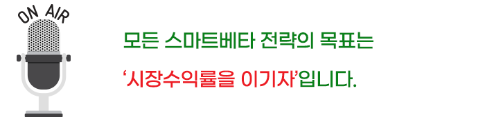 시황에 따라서 스마트베타 전략이 시장수익률을 이기는 경우도 있지만, 어느 전략이 유효한지는 결과론적으로만 검증될 뿐이지 그 예상이 항상 맞아떨어지지는 않기 때문이죠.
