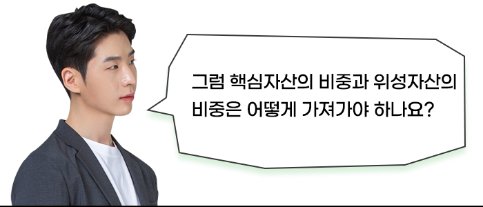 초과수익을 달성하기 원하는 공격적 투자성향의 투자자는 핵심자산 50% / 위성자산 50%의 포트폴리오를 구성할 것이고, 시장수익률만큼의 수익률 달성이 목표인 투자자의 경우에는 핵심자산의 비중이 거의 100%에 달할 것입니다.