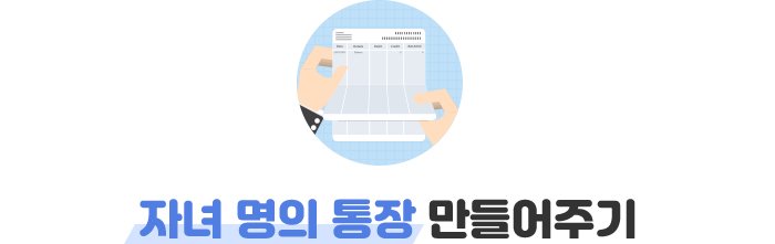 자녀에게 제대로 된 경제교육을 하기 위해서는 아이 이름으로 된 통장을 만들어주는 것만큼 효과적인 것이 없습니다. 어린 시절부터 꾸준히 저축하는 습관을 길러줄 수 있을뿐 아니라, 아이가 돈에 애착을 갖고 더 큰 꿈을 키울 수 있도록 도와줍니다.