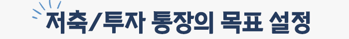 저축/투자 통장은 그 목표가 뚜렷하지 않으면 지켜 내기가 쉽지 않다. 막연하게 ‘돈을 굴려야지’라는 목표의 재테크를 하는 사람들은 실패 확률이 90% 지만, 구체적이고 명확한 목표를 설정하고 실행하는 사람들은 성공할 확률이 90%이다.