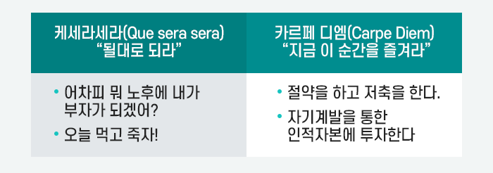 많은 사람들이 ‘욜로(YOLO)’와 ‘카르페 디엠(Carpe Diem)’의 의미에 대해서 오해(착각)를 하고 있습니다.