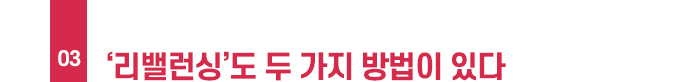 이와 같은 자산관리 방식을 ‘리밸런싱(Rebalancing)’이라고 합니다.