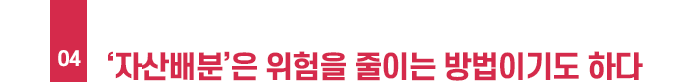 자산 배분을 통해 주식과 같은 위험한 자산과 채권과 같은 안전한 자산에 나누어 투자한다면 변동성이 큰 시장에서 주식으로 큰 손실을 보더라도 채권에 투자한 돈은 안전하게 지킬 수 있기 때문입니다.