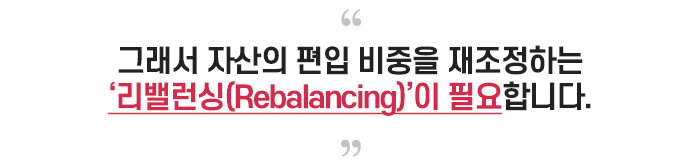 또한 투자를 장기간 하다 보면 자산을 배분해 놓았다고 하더라도 시장의 상황에 따라 자산 비중이 변할 수밖에 없습니다.