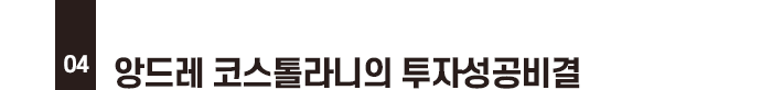유럽의 워런 버핏이라고 불리는 앙드레 코스톨라니가 말하는 투자성공 비결이 있습니다.