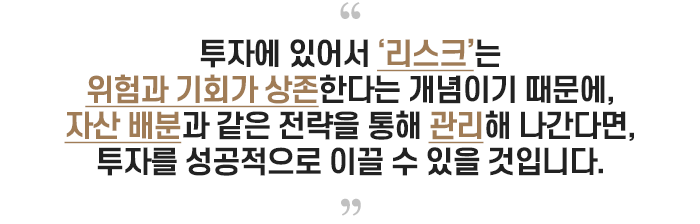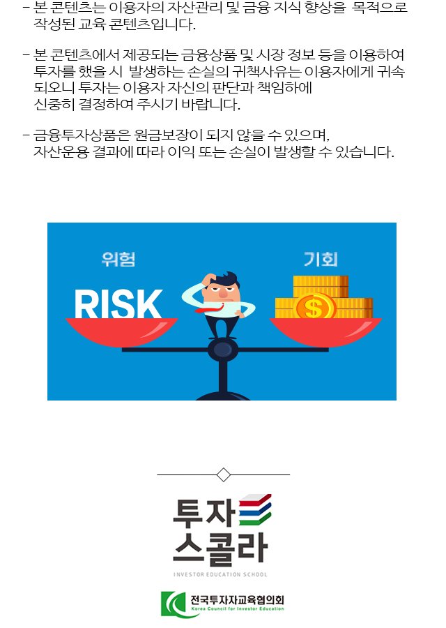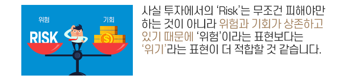 따라서 투자에는 위험과 기회가 상존하기 때문에 무조건 피하기보다는 잘 관리해서 위험은 줄이고 기회는 늘리는 지혜가 필요합니다.