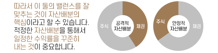 주식과 같은 자산에만 지나치게 공격적으로 투자하다가는 큰 손실을 볼 수 있고 채권과 같은 자산에만 지나치게 안정적으로 자산을 운용하면 저금리 상황에선 수익을 내기 어렵습니다.