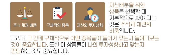 자산배분을 개인이 하기 힘들다면, 금융회사들의 자산배분 관련 상품(랩어카운트, 혼합형펀드 등)을 이용하면 됩니다.