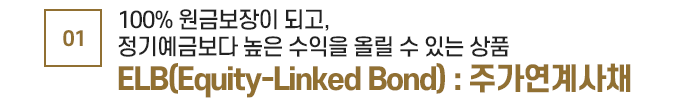 ELB상품은 “정기예금 + α의 수익” 또는 “주가지수 상승분의 몇 % 수익” 등 다양한 구조로 운용되고 있습니다.