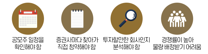 공모주는 주식시장에 상장하기 전에 미리 주주들을 공개적으로 모집하는 주식을 말합니다. 그런데 개인이 공모주에 투자하기에는 어려운 점이 많습니다.