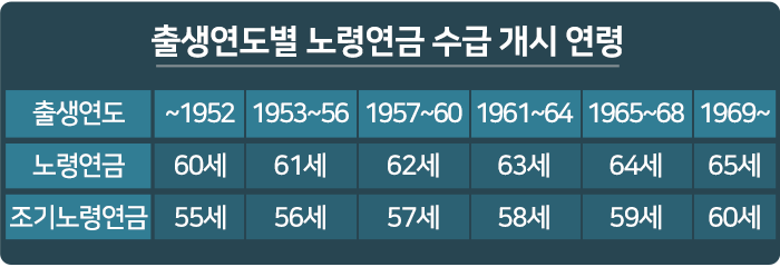 국민연금 보험료를 10년 이상 납부한 사람은 60세 이후 노령연금을 수령할 수 있는데, 노령연금수급 개시연령은 출생연도에 따라 다릅니다.