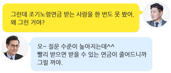 조기노령연금을 받으면 연금을 빨리 받는 대신 연금액이 줄어들게 됩니다.