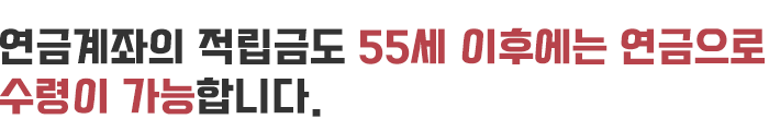 연금계좌 적립금도 55세 이후에 연금으로 수령할 수 있습니다.