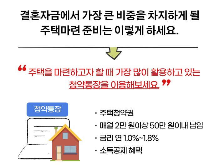 청약저축은 주택청약권이 주어지는 상품으로 매월 2만 원 이상 50만 원 이내에서 자유롭게 납입할 수 있고 연 1.0~1.8%까지 상대적으로 금리도 높으며 소득공제 혜택까지 있습니다.