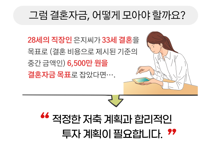 그런데 이 역시 직접적으로 닥친 사람이 아니라면 막연하게 느껴질 것입니다. 어느 시기를 결혼으로 잡고 필요 금액을 예측해야 할지 난감하기 때문입니다.