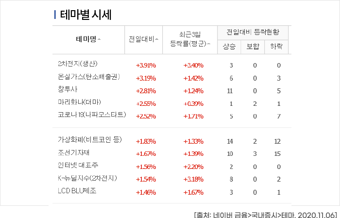 다섯째, 시장이 강세이거나 약세이거나 그 상황에 따라 대응할 수 있는 테마주는 항상 존재합니다.