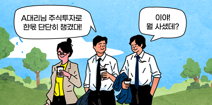 “너 얘기 들었어? 인사팀 A 대리님 이번에 주식투자로 한몫 단단히 챙겼대!”