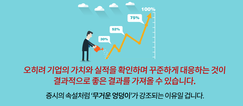 ‘산이 높으면 골도 깊다’는 증권 속설과도 맞는 이치죠. 시장의 움직임에 따라 빠르게 대응할 자신이 없다면 긁어 부스럼 만들 필요 없습니다. 오히려 어설프게 샀다 손해 폭이 커져 전전긍긍할 수 있다는 점도 기억해야 합니다.