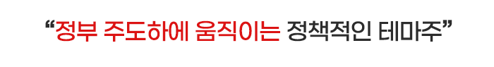 대표적으로 주식시장에 가장 기대하는 테마는 정부 주도하에 움직이는 정책적인 테마주라고도 합니다. 그만큼 정부가 직접 움직여 해당 산업을 키우고 자금을 움직이다 보니 그 안에서 성장할 기회를 찾는 기업이라면 수혜가 크다는 시각이죠.