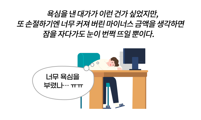 하지만 며칠 뒤 보유한 종목이 더 하락하자 구멍 뚫린 듯이 사라지는 내 잔고… 이제 어떻게 대응해야 하는 거지. 눈앞이 하얘졌다.