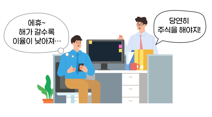 “나도 작년부터 주식 시작했는데 은행 이자 저리 가라야. 지금 같이 활황장일 때는 당연히 주식을 해야지!”