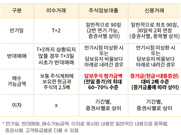 보유한 주식을 매도하지 않고 보유 주식을 담보로 대출을 받아 현금을 마련하거나 그 마련된 현금으로 주식을 다시 매수할 수 있는 것으로, 무엇보다 담보비율(140% 이상)을 유지하는 것이 중요합니다.