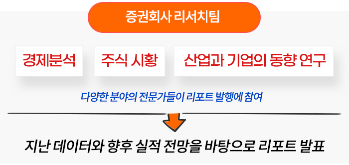 증권회사 리서치팀은 경제분석과 주식 시황, 산업과 기업의 동향을 연구하고 지난 데이터와 향후 실적 전망을 바탕으로 리포트를 발표합니다.