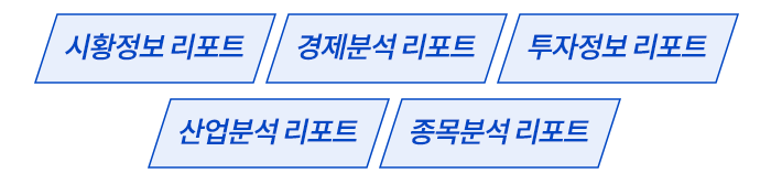 매년 하반기에 발간되는 ‘연간 주식시장 전망’과 다음 달과 다음 주를 전망하고 이슈를 짚어내는 ‘월간 리포트’와 ‘주간 리포트’들입니다. 미리 주식시장에 영향을 줄 만한 이슈를 이해하고 먼저 준비하는 것도 좋은 투자전략이 될 수 있습니다.